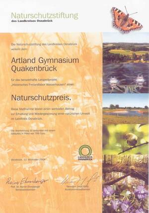 - Artland-Gymnasium wird Umweltschule in Europa 2006 bis 2008 (Bersenbrücker Kreisblatt 1. 10.2008)