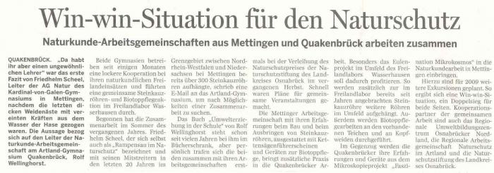 - Kooperation mit dem Kardinal von Galen Gymnasium Mettingen (Bersenbrücker Kreisblatt vom 21.4.2009)