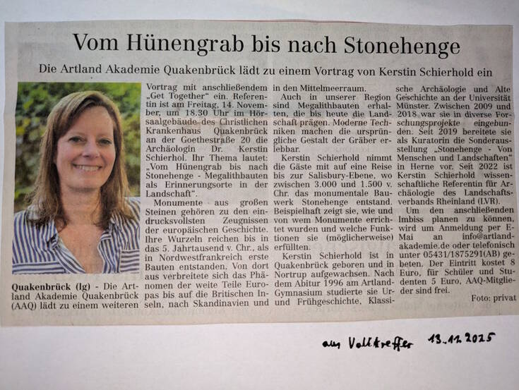 In die Welt der Großsteingräber entführte Dr. Kerstin Schierhold die Zuhörer in ihrem faszinierenden Vortrag "Vom 'Hünengrab' bis nach Stonehenge" bei der